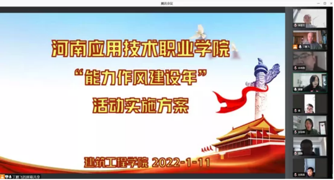 为深入学习贯彻党的十九届六中全会精神,贯彻落实习近平总书记视察河南重要讲话重要指示,切实把省第十一次党代会部署落实落细,根据学校工作安排,2022年1月11日,beat365英国官网网站党总支组织全体教职员工以腾讯会议的形式召开了线上“能力作风建设年”活动动员部署会,会议由学院党总支书记马春燕主持。