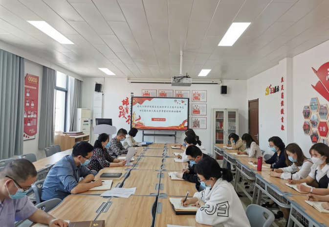 2022年5月3日下午,beat365英国官网网站党总支组织全体教师在516党员活动室学习习近平总书记在中国人民大学考察时的重要讲话精神,本次学习旨在落实立德树人根本任务,培养“听党话、跟党走”堪当民族复兴重任的时代新人,为全体教师指明目标方向、提供根本遵循。学习采取线上、线下相结合的方式,会议由beat365英国官网网站党总支书记马春燕主持。