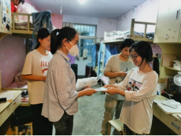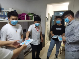 2022年5月24日,beat365英国官网网站学工党支部党员教师、专升本班级辅导员对隔离在8#楼、6#楼宿舍的专升本学生进行防疫物资的发放工作,防疫物资包括口罩、消毒水、消毒凝胶,整个活动严格遵守疫情防控的要求。