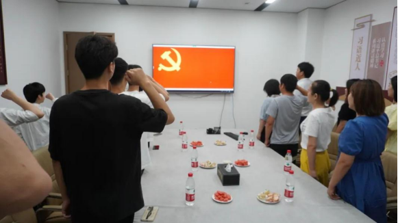 在“七一”建党节来临之际,在支部书记马春燕的领誓下,党员教师、预备党员学生重温入党誓词,大家高举右拳,用铿锵有力的声音表达了自己对党和人民做出的承诺。以此勉励同学们永葆艰苦奋斗、拼搏向上的传统精神,赓续红色血脉,在岗位上做出成绩。
