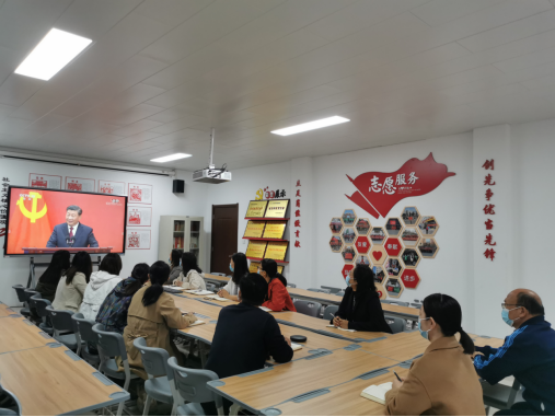 2022年10月23日,在中国共产党第二十届中央委员会第一次全体会议上当选的新一届中央领导集体在北京人民大会堂同中外记者亲切见面。beat365英国官网网站党总支高度重视,组织师生在西校区A516 党员活动室和东校区202会议室集中观看直播,深入学习习近平总书记的重要讲话。