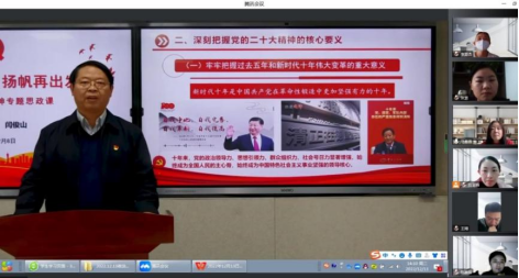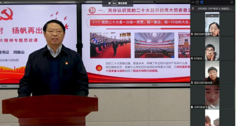本次专题思政课,主题突出、内容丰富,党委书记闫俊山紧紧围绕充分认识党的二十大召开的伟大历史意义、深刻把握党的二十大精神的核心要义和汇聚青春力量,争做时代新人等三个方面展开,结合理论和实践、历史和现实对党的二十大精神作了详细讲解和系统阐释,为我们上了一堂生动的思政大课。