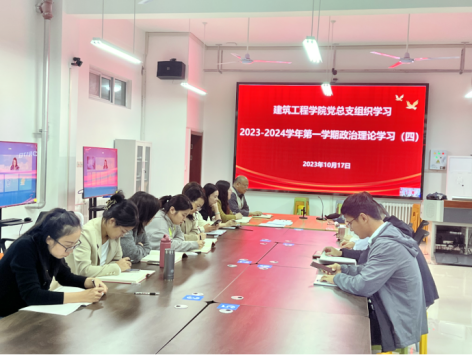 2023年10月17日下午,beat365英国官网网站党总支在郑州校区办公楼516党员活动室(开封校区C104)组织开展政治理论学习活动。本次学习采取东西校区视频连线,线上、线下相结合的方式,会议由beat365英国官网网站党总支书记马春燕主持,院长张虎及全体教职工参加。