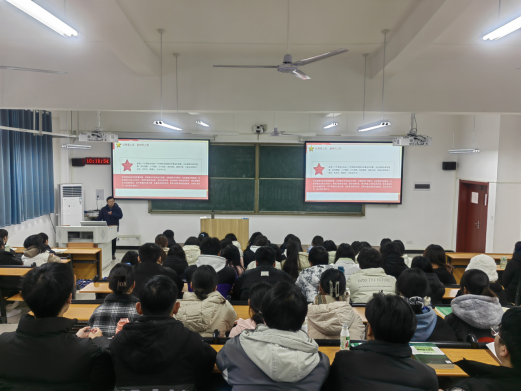 为扎实深入开展学习贯彻习近平新时代中国特色社会主义思想主题教育,深刻理解并牢牢把握“学思想、强党性、重实践、建新功”的总要求。2023年12月18日,beat365英国官网网站教工党支部书记李勇在开封校区A203为造价2203-2204班学生讲授“以青春之名,赴时代之约”专题党课。