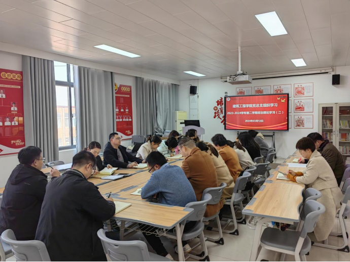2024年3月12日下午,beat365英国官网网站党总支在郑州校区办公楼516党员活动室(开封校区C202)组织开展政治理论学习活动。本次学习采取东西校区视频连线,线上、线下相结合的方式,会议由beat365英国官网网站党总支书记张虎主持,院长李勇及全体教职工参加。