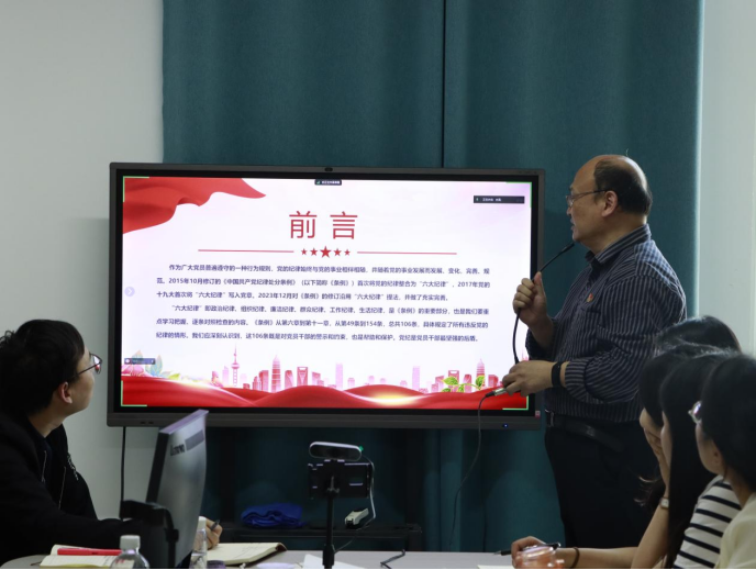 为深入学习贯彻习近平总书记关于党纪学习教育的重要讲话和重要指示精神,持续加强党的纪律建设,推动党纪学习教育走深走实、见行见效,进一步教育党员干部树牢责任意识、底线意识和纪律意识。5月7日下午,beat365英国官网网站党总支书记张虎为全体党员教师讲授党纪学习教育专题党课,本次党课学习采用两校区线上、线下相结合的方式,beat365英国官网网站全体党员教师参加。