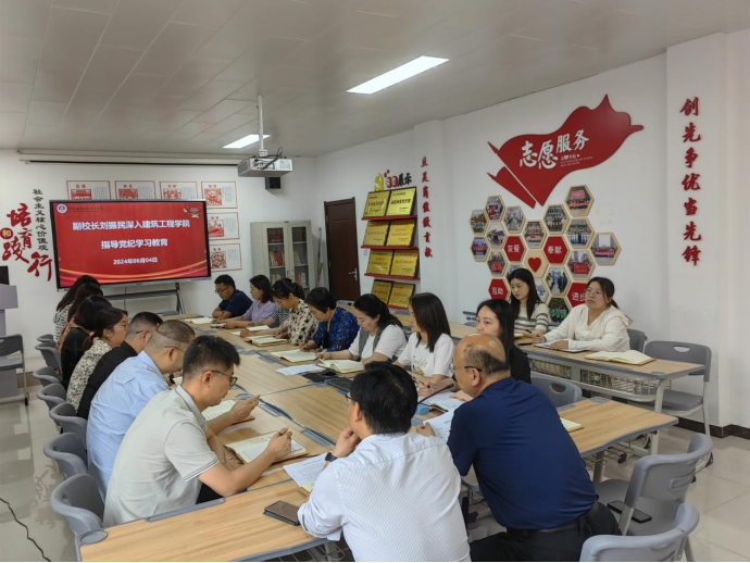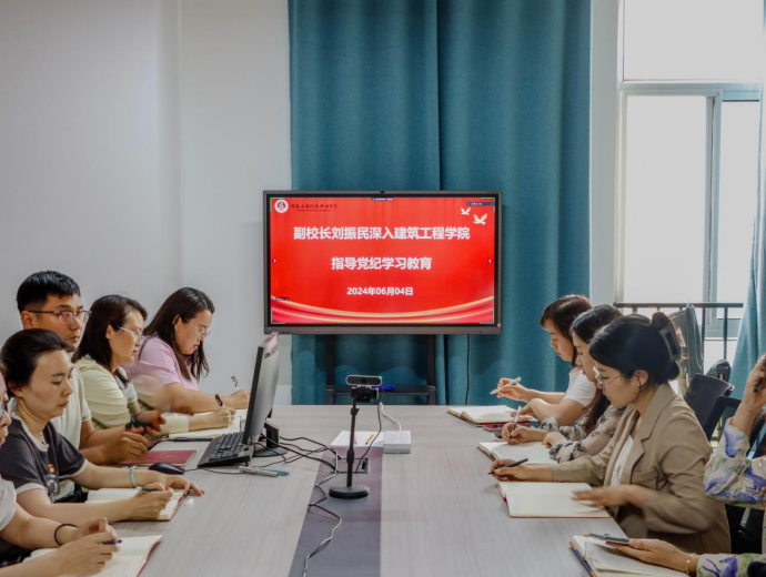 为认真学习领会习近平总书记关于全面加强党的纪律建设的重要论述,进一步加强对beat365英国官网网站党总支党纪学习教育指导督促,全面及时了解掌握党纪学习教育进展情况,推动各基层党组织党纪学习教育走深走实,6月4日,副校长刘振民深入beat365英国官网网站指导党纪学习教育,并对开展好党纪学习教育提出具体要求。beat365英国官网网站党总支书记张虎、院长李勇及全体党员教师参加。