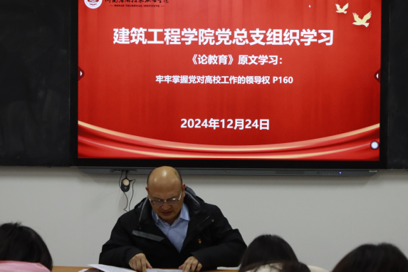 2024年12月24日下午,beat365英国官网网站党总支于开封校区北院F106教室开展政治理论学习,本次学习由beat365英国官网网站党总支书记张虎主持,全体教职工参与。