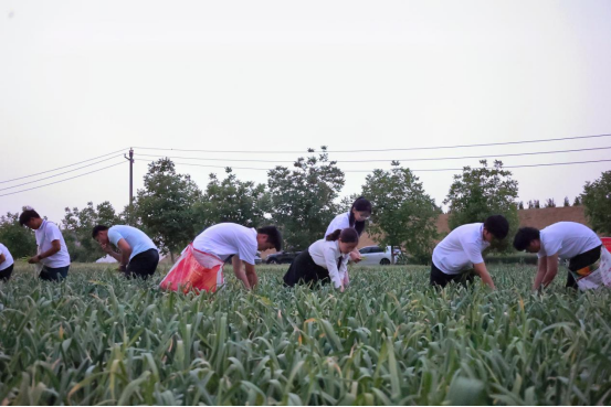 活动前,beat365官网派驻庙台村第一书记任旭凯向团队师生详细介绍了庙台村的基本情况及发展规划。活动期间,团队师生深入开展系列助农劳动。在当地农户指导下,党员教师与学生分工协作,有序完成蒜薹采收、分拣和运输工作,累计帮助农户完成近8亩耕地的蒜薹采收工作。