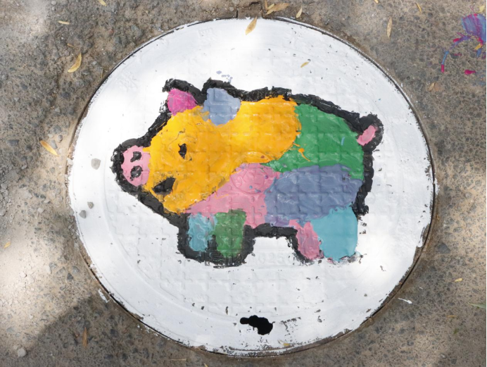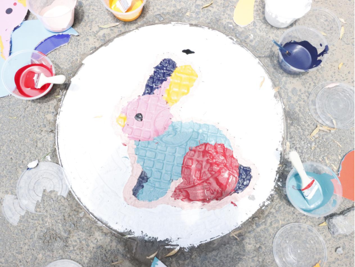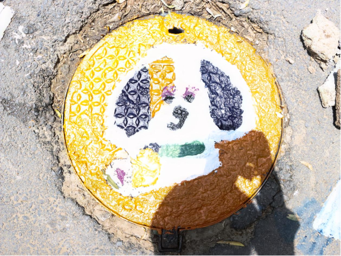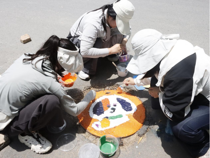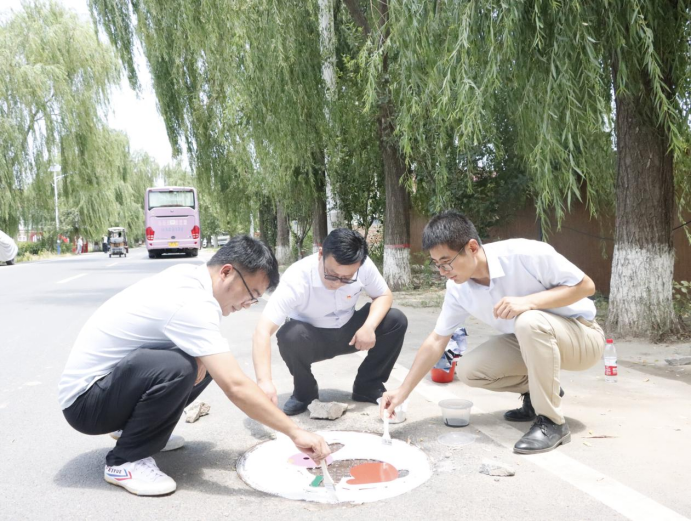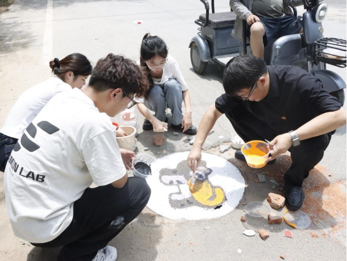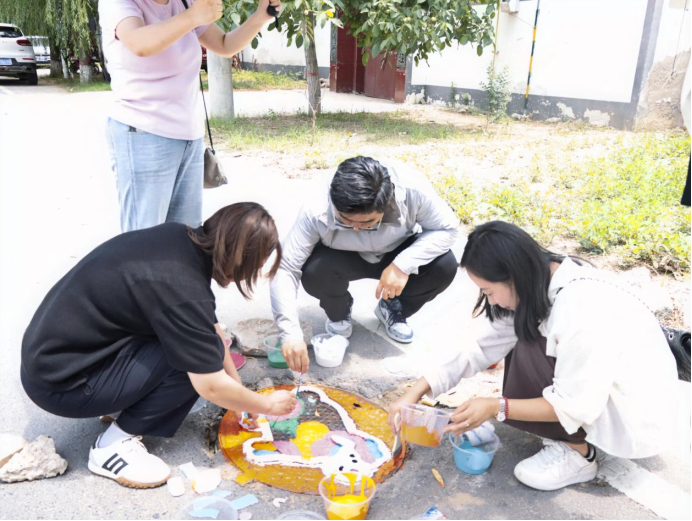 活动现场,党员师生们充分发挥建筑专业优势,将艺术创意与乡村特色相融合。他们手持画笔,蘸取五彩颜料,在井盖上精心绘制出一幅幅生动有趣的图案。有憨态可掬的小猪、活泼灵动的兔子、俏皮可爱的小狗,还有色彩斑斓的小羊。这些图案不仅为乡村环境增添了趣味性和艺术感,更传递出积极向上的生活态度和对乡村美好未来的期许。
