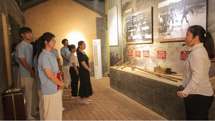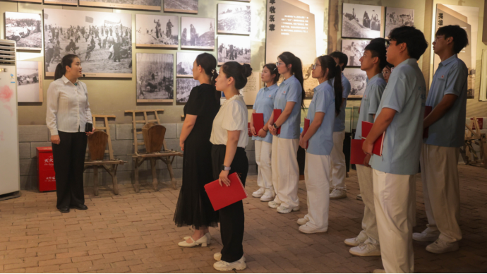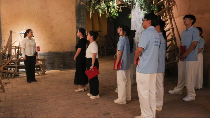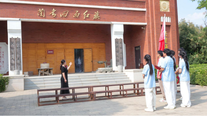 兰考县四面红旗纪念馆作为红色教育重要阵地,集中镌刻着焦裕禄同志在兰考树立的精神丰碑——韩村“一不怕苦、二不怕死”的斗争精神、秦寨“自力更生、奋发图强”的创业决心、赵垛楼“敢于斗争、敢于胜利”的攻坚干劲、双杨树“团结奋斗、共同富裕”的发展道路。活动前,党总支副书记刘亚娟简要阐明活动意义,在讲解员的讲解下,师生们在一幅幅泛黄的历史照片、一件件承载岁月的实物前驻足沉思,循着焦裕禄带领群众战风沙、斗内涝、治盐碱地的足迹,重温那段攻坚克难的峥嵘岁月。