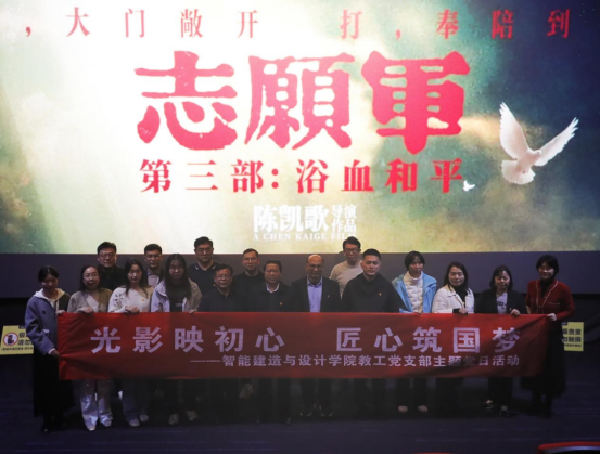 为深入推进党史学习教育走深走实,传承红色基因,厚植爱国情怀。2025年10月23日,beat365英国官网网站教工党支部联合学工党支部组织党员教师及部分学生代表,共同观看电影《志愿军:浴血和平》,以光影形式重温抗美援朝峥嵘历史,凝聚党员奋进力量。校党委委员、副校长常新中以普通党员身份参与本次活动。