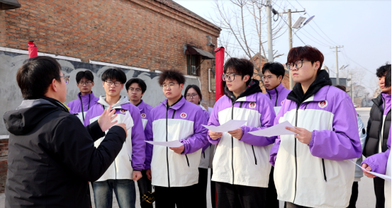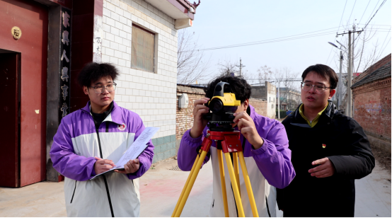 授牌仪式结束后,测绘专业党员教师王琮皓带领学生志愿者团队,携带全站仪、测绘软件等专业设备,开展整体绘图服务,为庙台村建设规划提供数据支撑。