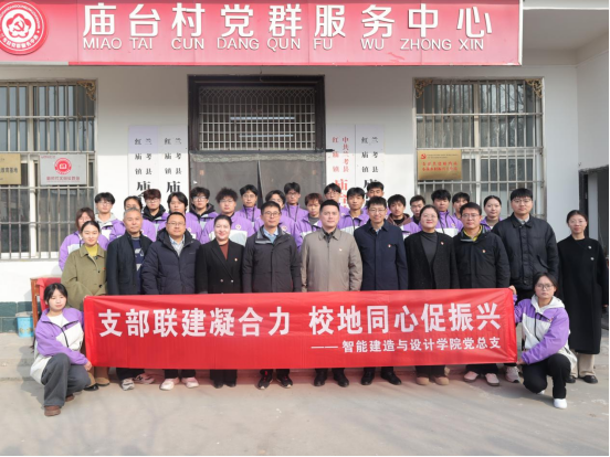 挂牌仪式在庙台村党群服务中心举行。宁晓冬介绍了本次活动背景、目的及参与人员。他表示,学院党总支将以此次共建为契机,重点从四个方面持续发力:一是筑牢“组织共建”堡垒,通过常态化联络与联合组织生活,提升基层党组织战斗力;二是深化“人才共育”模式,依托新建的校外实践基地,将庙台村打造为思想政治实践与专业教育的重要场所;三是聚焦“产业共兴”需求,发挥建筑测绘、智能建造等专业优势,为乡村规划与产业发展提供技术支持;四是推动“文化共融”传承,共同挖掘红色历史与乡土文化,涵养文明乡风。