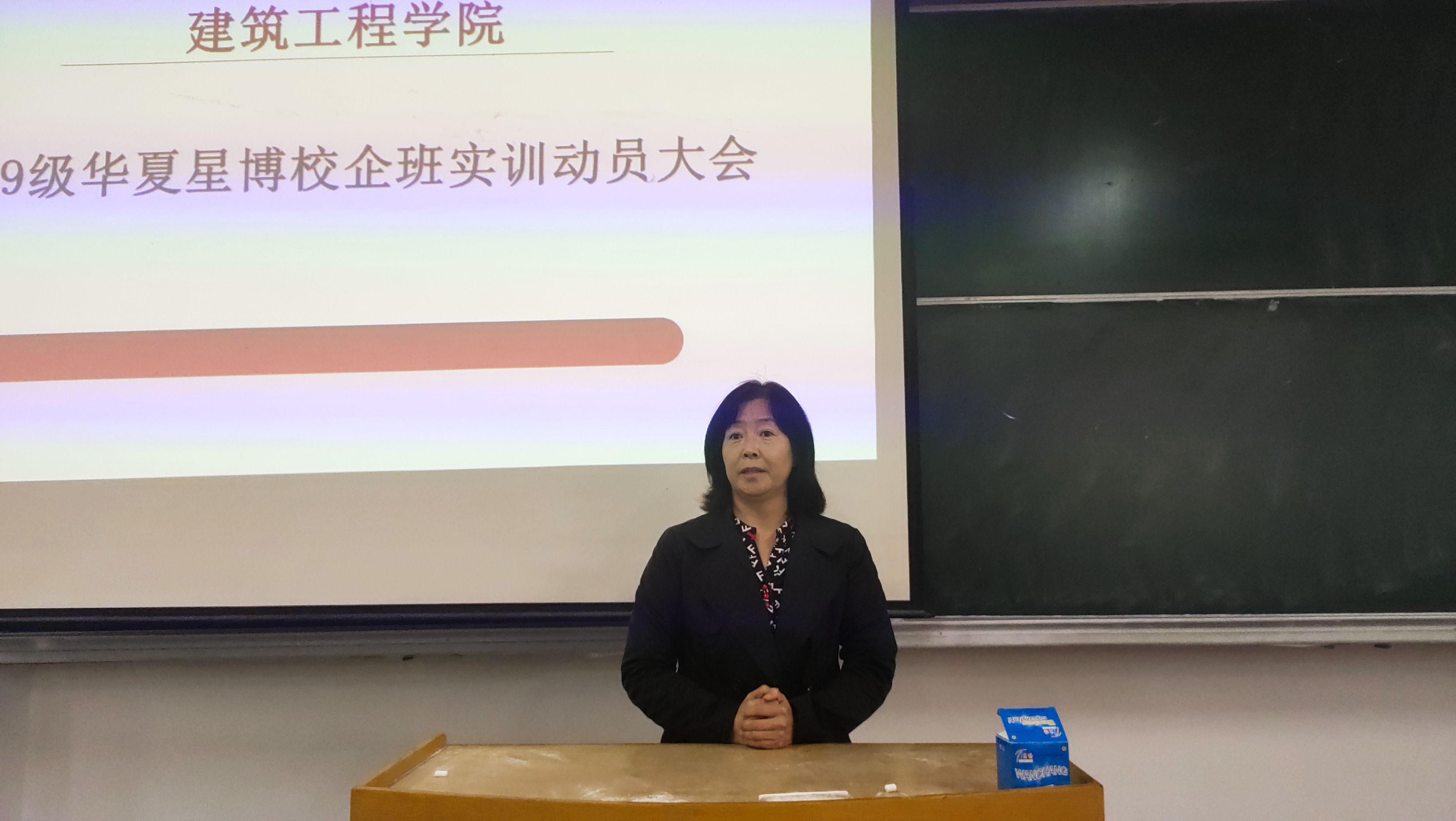 2020年10月10日中午12:20在B101召开了beat365英国官网网站19级华夏星博校企班实训动员大会。首先beat365英国官网网站马春燕书记提出了几点要求:第一,要加强政治思想道德修养,没有规矩不成方圆,提高个人综合素养;第二,要做好人生规划,学好专业知识,更好地讲理论与实践相结合,提高自身专业水平;第三,以往届优秀的学长学姐们为榜样,发扬拼搏向上的建工精神,激励大家各方面奋勇向前,争得荣誉,做一个全方位人才。最后,马书记希望同学们在实训中充实自己,丰富自己,且行且思,有所收获。
