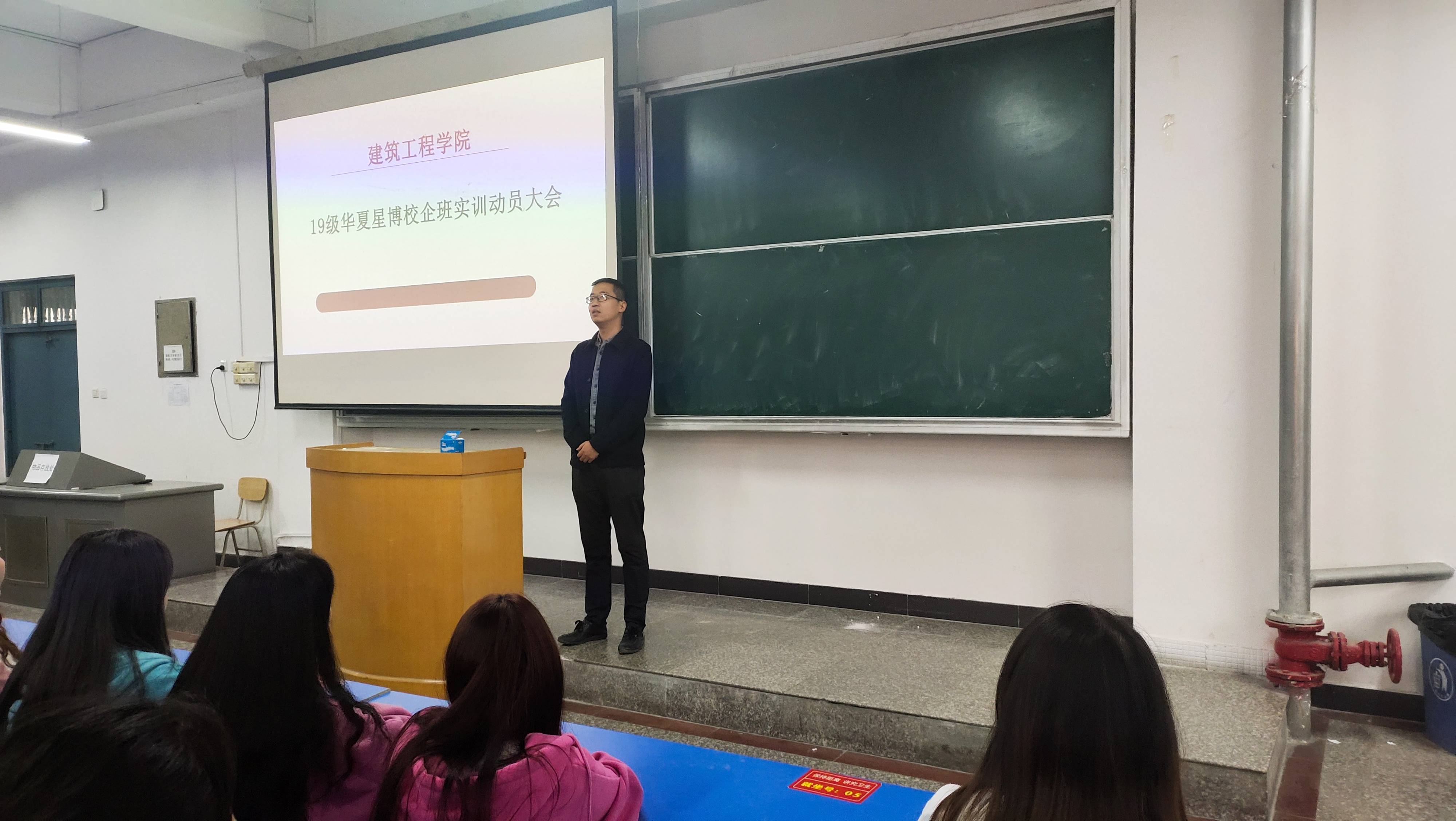 华夏星博教学部总监李昊老师详细介绍了实习基地情况,并对整个实训的安排进行了说明。希望同学们注意自身的安全,在中期实训过程中谦虚学习,善于思考,发扬积极主动的精神,顺利完成中期实训的同时有所收获、有所成就。