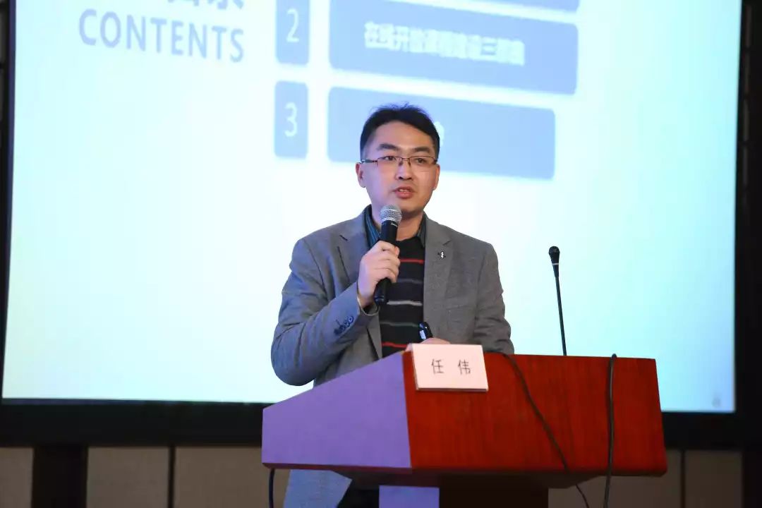 任伟老师就“beat365官网省级精品在线开放课程的建设经验”作主题报告,分享了在课程建设中学校层面的保障措施、团队分工及技术突破,总结了课程建设理念的四化,即“教学方式混合化”、“教学资源开放化”、“学生学习个性化”、“学习过程社会化”。