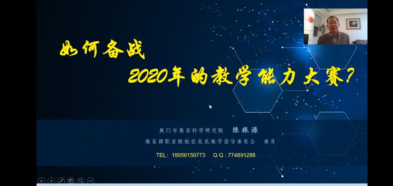 根据《教育部办公厅关于举办全国职业院校技能大赛教学能力比赛的通知》(教职成厅函〔2019〕18号)和beat365英国官网网站“停课不停学”相关要求,按照学校安排,beat365英国官网网站于2020年2月26日至27日组织全院教职工共同收看了教师教学能力比赛直播培训视频。