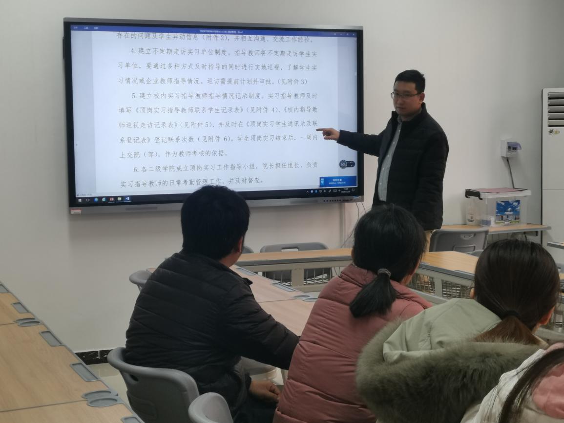 通过本次会议,各顶岗实习指导教师再一次明确了岗位任务,更加的懂得了担当,将更加积极与企业沟通,了解实习学生在实习期间的思想、工作、学习与生活情况,强化疫情期间顶岗实习学生的安全意识,切实保障实习生利益,保证2018级学生顺利完成顶岗实习工作。