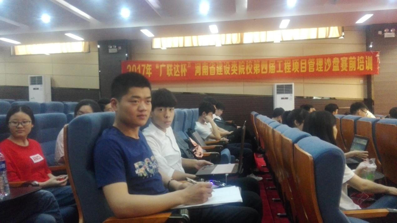 2017.05.20—2017.05.21两天,我院安排刘高喜老师、冯娇伟老师带领2016级王培峰等7名同学参加了“?河南省建设类院校第四届工程项目管理沙盘技能大赛”的赛前培训。该培训由河南省建筑教育协会主办,郑州信息科技职业学院和广联达科技股份公司协办。