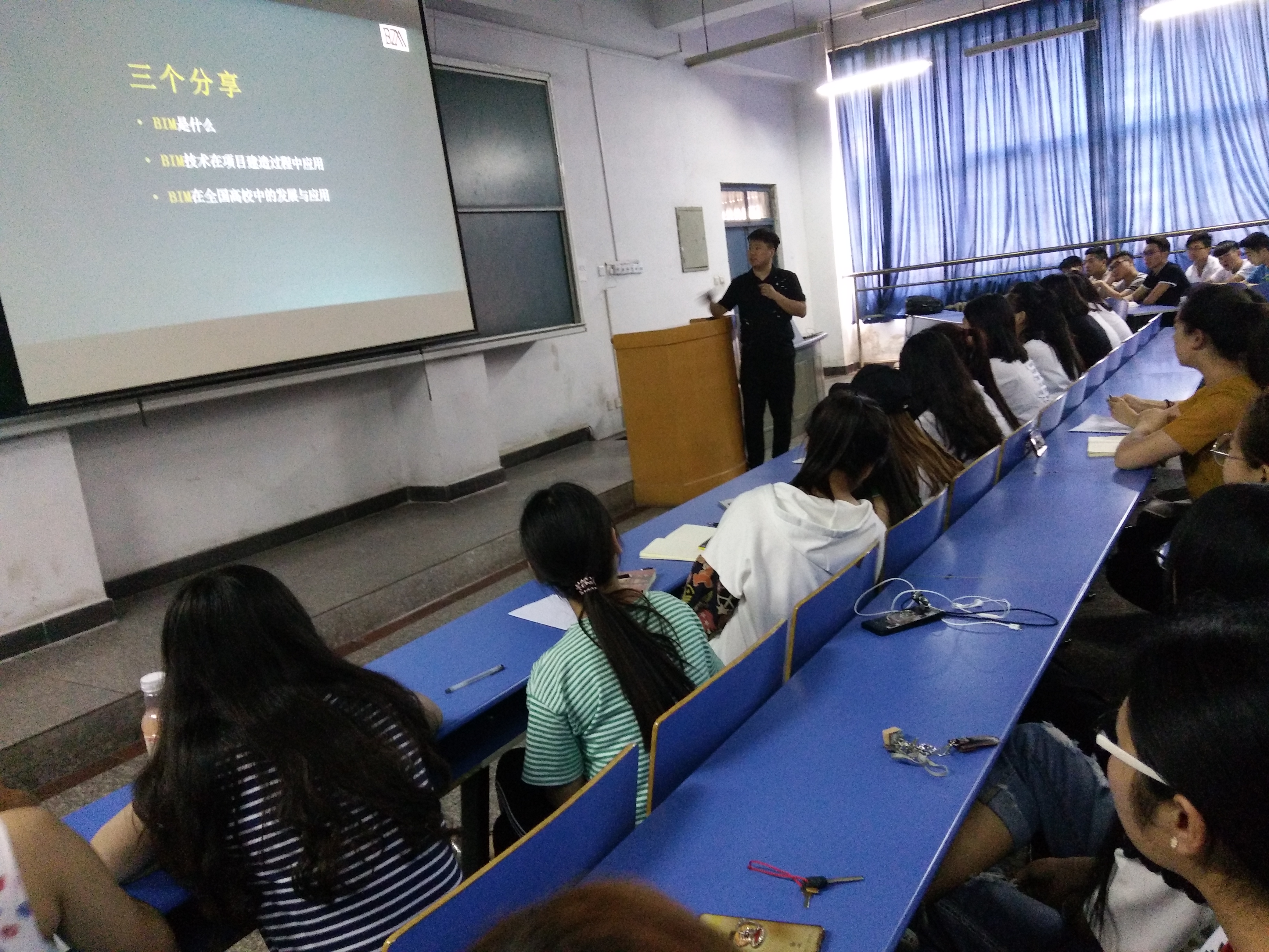建筑信息模型(Building Information Modeling,简称BIM)是建筑学、工程学及土木工程的一项新工具、新技术,为了让beat365英国官网网站师生进一步了解工程建设领域信息技术应用领域的先进科学技术与理念,beat365英国官网网站特于2017年5月16日下午13:50时在b楼102教室举办了题为“《信息共享,协同管理——BIM技术在建造过程中的应用》”的专题讲座。本次讲座特邀河南博之幕软件科技有限公司BIM技术顾问张东升作为主讲嘉宾,建筑学院院长张虎以及200余名学生参加了本次讲座。