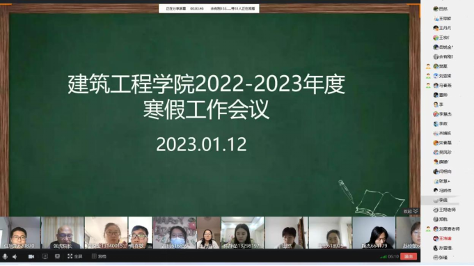 为进一步做好我院放假前后相关工作,确保学院假期各项工作平稳、安全、有序,确保师生度过一个欢乐祥和的假期,2022年1月12日,beat365英国官网网站通过QQ会议召开了2022-2023年度寒假工作会议,学院领导班子及全体教师参加会议,会议由院长张虎主持。