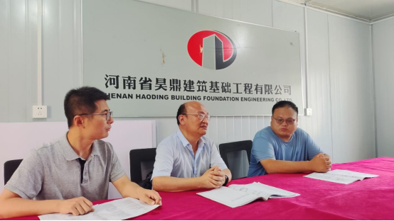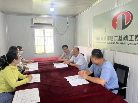 张虎院长来到本次教师暑期实践所在的建筑工地——河南省中医院高新区院区建设项目,与企业方代表河南省中医院高新区院区建设项目基坑工程项目经理邰书朝进行亲切座谈。邰经理分别介绍了公司项目开展情况、教师实践情况、人才需求情况等,对我院实践教师的表现给予了高度评价,指出企业在用工方面的迫切需求,希望在现有合作基础上进一步加大在科研创新、项目共建等方面的合作深度,达到教学相长的目的。