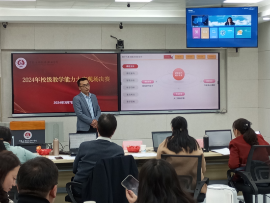 为落实立德树人根本任务,构建“三全育人”体系,深化“三教”改革,探索“岗课赛证”综合育人,推进高水平、结构化教师教学创新团队建设,2024年3月7日,beat365英国官网网站于郑州校区C303智慧化教室积极参加2024年校级教学能力比赛决赛。