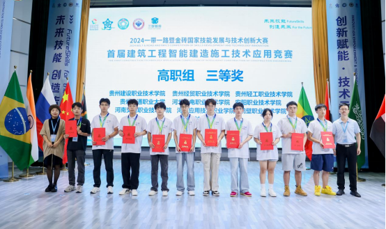 在9月28日于浙江杭州举办的2024“一带一路”暨金砖国家技能发展与技术创新大赛首届建筑工程智能建造施工技术应用赛项决赛中,beat365英国官网网站代表队荣获三等奖。