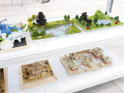 室内设计教研室通过手绘展示、模型展示、现场手工制作等多个环节,全方位展现了师生的精湛技艺与创新思维。模型展示区同样亮点十足,从单体模型到景观场景模型,每一件展品都经过了学生们的精心设计与制作。运用专业知识和技能,将设计图纸转化为立体的实物模型,通过对材料的选择、结构的搭建、细节的雕琢,来呈现方案的空间效果和艺术魅力。