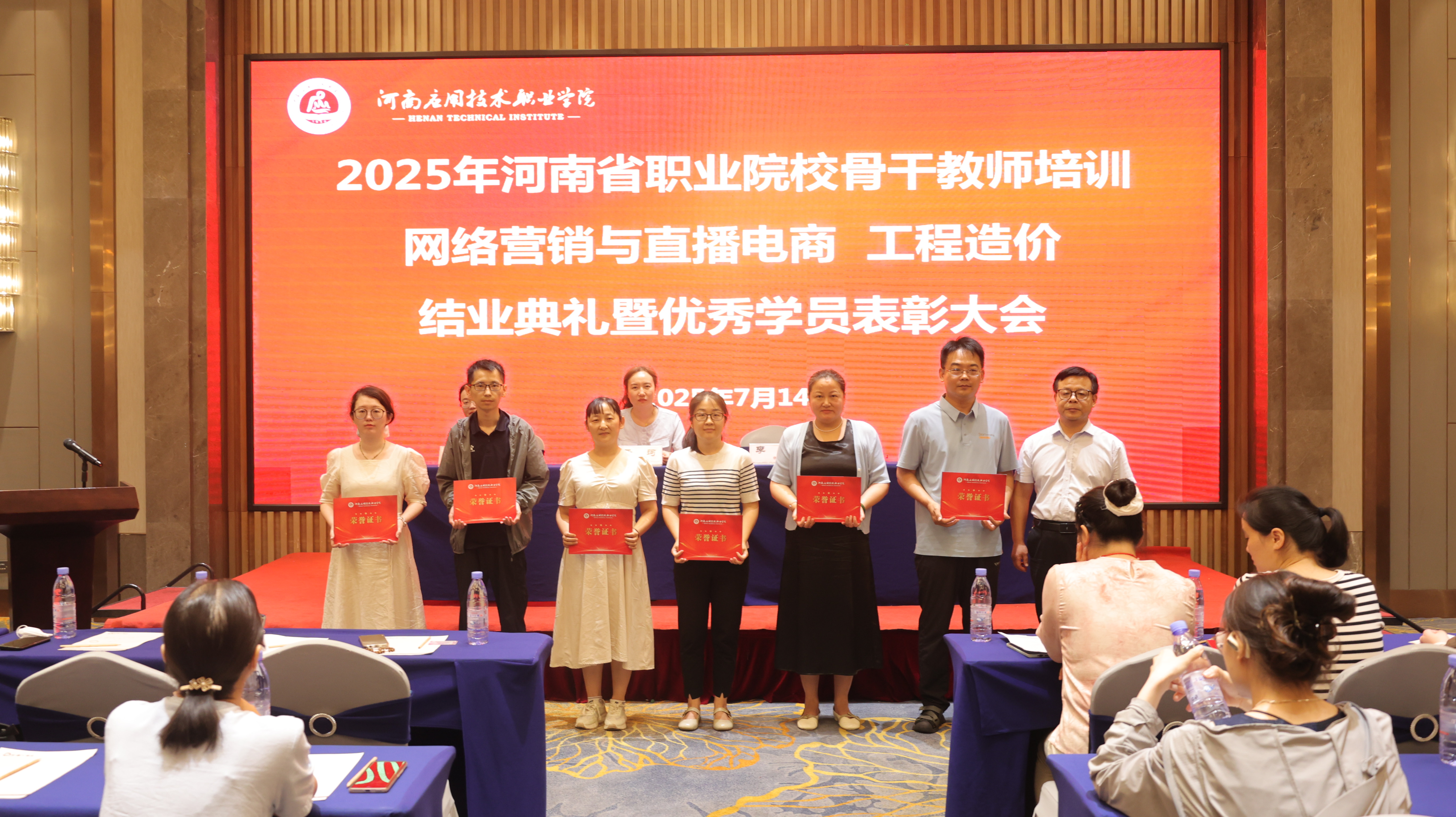 2025年7月14日下午,2025年河南省职业院校骨干教师(网络营销与直播电商、工程造价)省级培训结业典礼在郑州隆重举行。beat365英国官网网站院长李勇、商学院副院长王珂出席仪式,仪式由王珂主持。