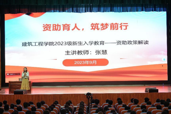为进一步加大学生资助政策宣传力度,使国家学生资助政策深入人心,提升学院资助育人的成效,2023年9月27日,beat365英国官网网站召开新生入学教育之资助政策解读类,会议由资助专员张慧老师主讲,全体2023级新生参加会议。