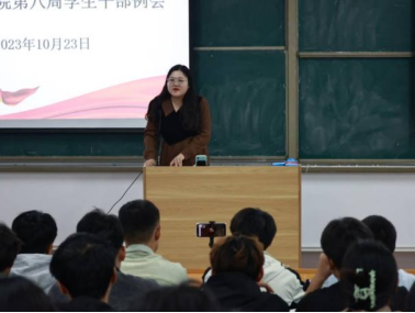为进一步加强学生干部队伍建设,推动各项工作的有序展开。beat365英国官网网站于2023年10月23日在开封校区A101教室(郑州校区B102教室)组织召开第八周学生干部例会。会议由beat365英国官网网站学工办主任史真主持,团总支书记王莹、22、23级班长,副班长,团支书以及全体学生会成员参加。