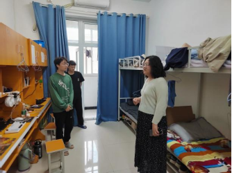 接着,辅导员来到学生宿舍,排查宿舍安全问题,并对学生进行安全教育,强调同学们严禁使用大功率电器,注意宿舍用电安全,提醒学生们天气越来越炎热,宿舍要常通风,保证宿舍空气流通。同时,还慰问了同学们的假期生活,叮嘱同学们要迅速调整心态,全身心投入到学习当中。