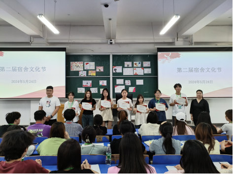 最后,对获得“文明宿舍”称号和在“宿舍文化节”活动中获奖的同学进行颁奖与鼓励,期待下一次能有更多同学获奖。