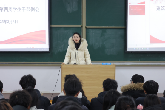 会上,史真着重强调,宿舍安全管理是学生干部的责任,关乎同学生命财产与身心健康,需营造安全舒适的宿舍环境。此外,她鼓励同学们参与四月的春季运动会并做好后勤工作,助力运动会开展。李希望介绍了春季运动会的竞赛项目、训练时间安排,提及以往同学取得的优异成绩,鼓励大家积极参与,挑战自我,展现建工学子的拼搏风貌。