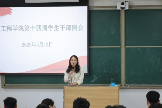随后,王莹对近期的多项活动和工作进行了安排。她提到学院将以打扫卫生为契机,引导同学们深入理解劳动精神、工匠精神和劳模精神,推动德智体美劳五育并举。此外,她要求23级学生干部做好“传帮带”,为24级同学提供经验和指导,同时鼓励24级同学积极参与,勇于尝试。