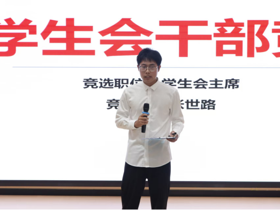 活动伊始,王莹书记介绍了此次换届竞选的流程与规则,强调了公平、公正、公开的原则。随后,竞选学生依次上台进行竞选演讲,他们结合自身优势、工作设想以及对学生会工作的理解,表达了为同学们服务的热忱与决心,充分展现了当代大学生积极向上、勇于担当的精神风貌。