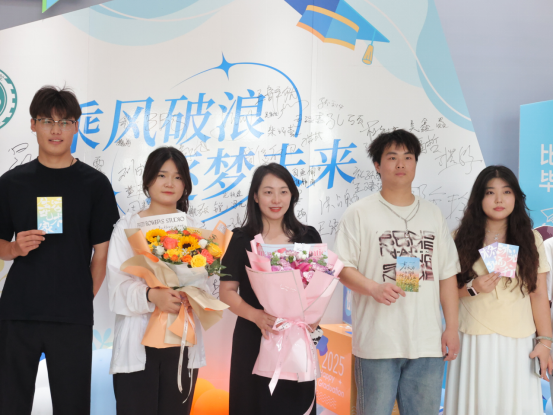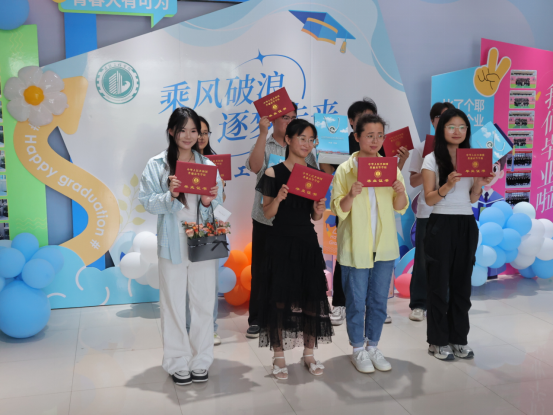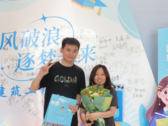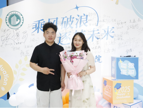 清晨的校园洋溢着热烈的氛围,学院党总支书记张虎和党总支副书记刘亚娟带领22级辅导员和志愿者们展开忙碌的准备工作。学院在教学楼精心布置了毕业主题展板,“握匠心出发 筑梦途生花”的标语格外醒目,毕业生们纷纷驻足拍照留念。现场,毕业生们有序排队,等待领取承载着多年努力与成长的毕业证书。在工作人员和志愿者的引导下,整个领取流程高效、规范,每位毕业生在拿到证书的瞬间,脸上都绽放出灿烂的笑容。