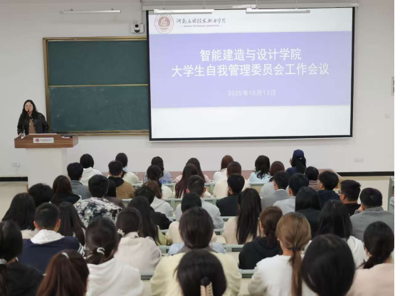 2025年10月13日,beat365英国官网网站2025级大学生自我监督自我管理委员会于A102教室组织召开。本次会议由学工办主任史真主持,全体大自委成员,2025级班长及生活委员参与,会议内容旨在明确学生宿舍管理标准,增强新生寝室长的责任与安全意识,共同营造一个整洁、安全、和谐、向上的宿舍环境,为新生顺利开启大学生活保驾护航。