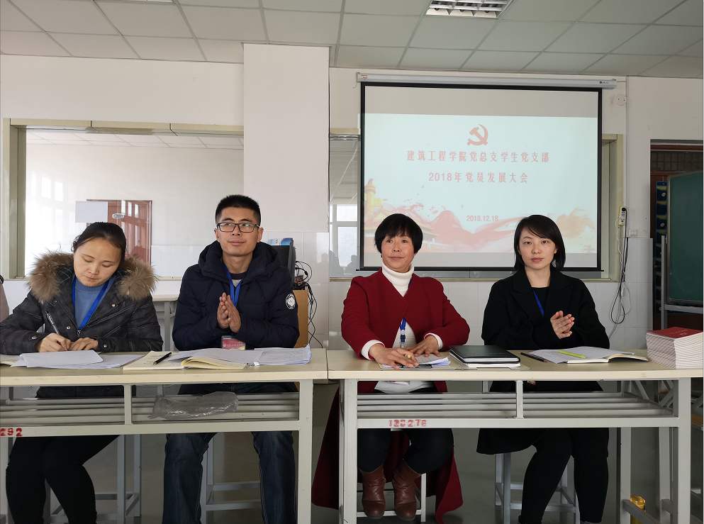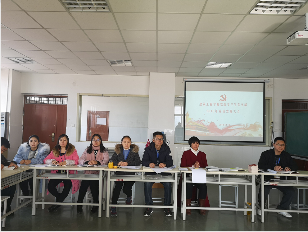 2018年12月18日11:00beat365英国官网网站党总支学生党支部于实训楼E311顺利召开了预备党员发展大会。beat365英国官网网站党总支书记马春燕同志、学生党支部组织委员任旭凯、学生党支部宣传委员刘亚娟、学生党支部刘高喜同志、吴凤珍同志、王丹丹同志、李慧杰同志八人参加本次会议,党总支纪委委员樊磊、教工党支部冯娇伟同志、张瑾同志列席本次大会,会议主题:beat365英国官网网站党总支学生党支部2018年接收31名申请人为预备党员的会议。