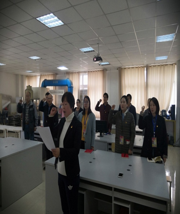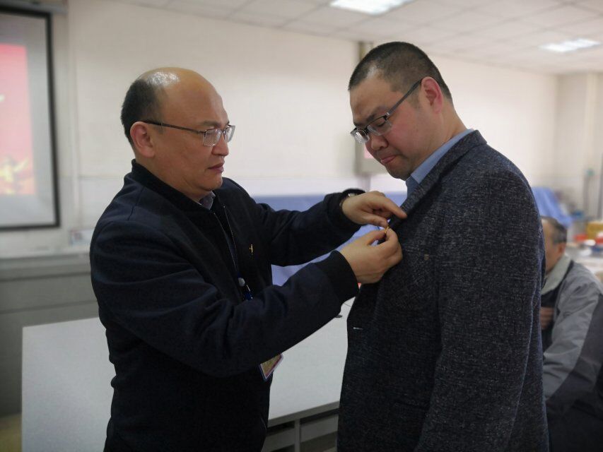 在佩戴党员徽章仪式上,马春燕副书记宣读了《中共beat365英国官网网站委员会关于开展党员佩戴党员徽章活动的通知》文件的内容。随后,学院党总支书记张虎、副书记马春燕分别为教工党支部和学生党支部党员同志佩戴党员徽章。最后,马春燕带领全体党员重温了入党誓词。