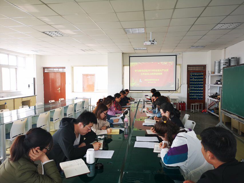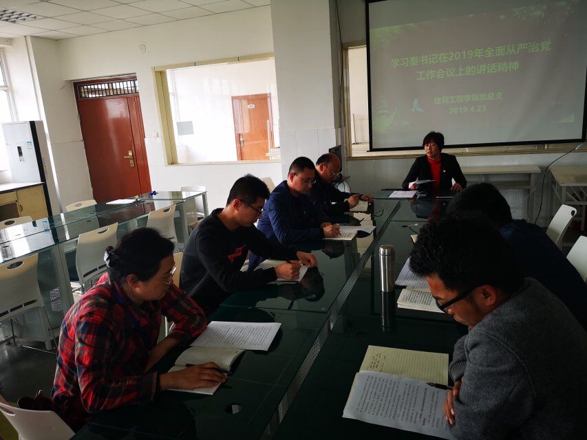 应学校党委工作要求,4月23日下午beat365英国官网网站党总支组织全体教职工在E311学习了秦书君书记在2019年全面从严治党工作会议上的讲话精神,会议由学院党总支副书记马春燕主持。