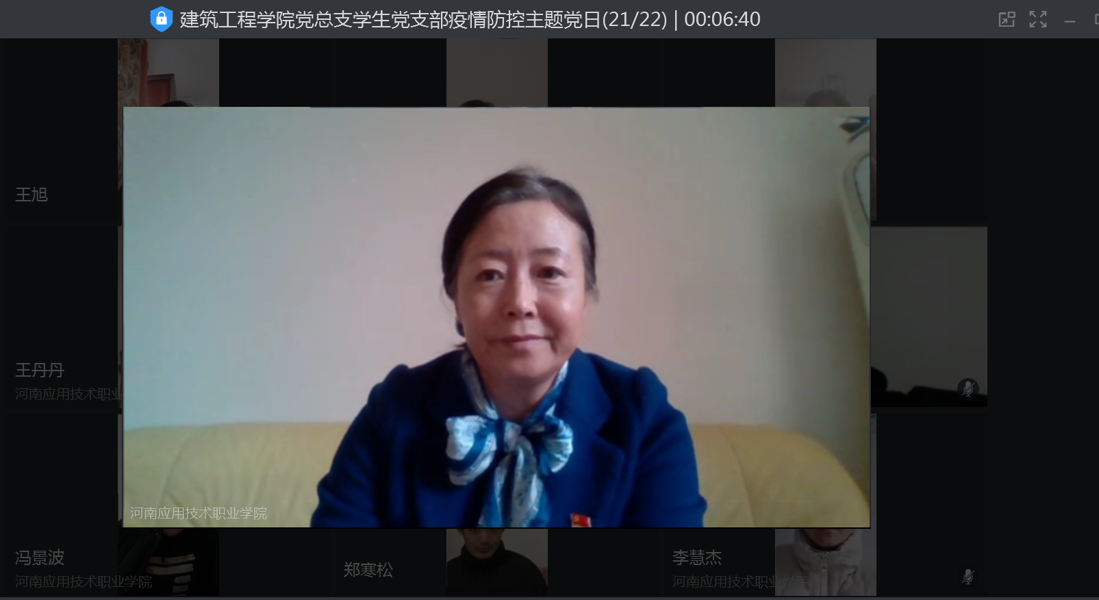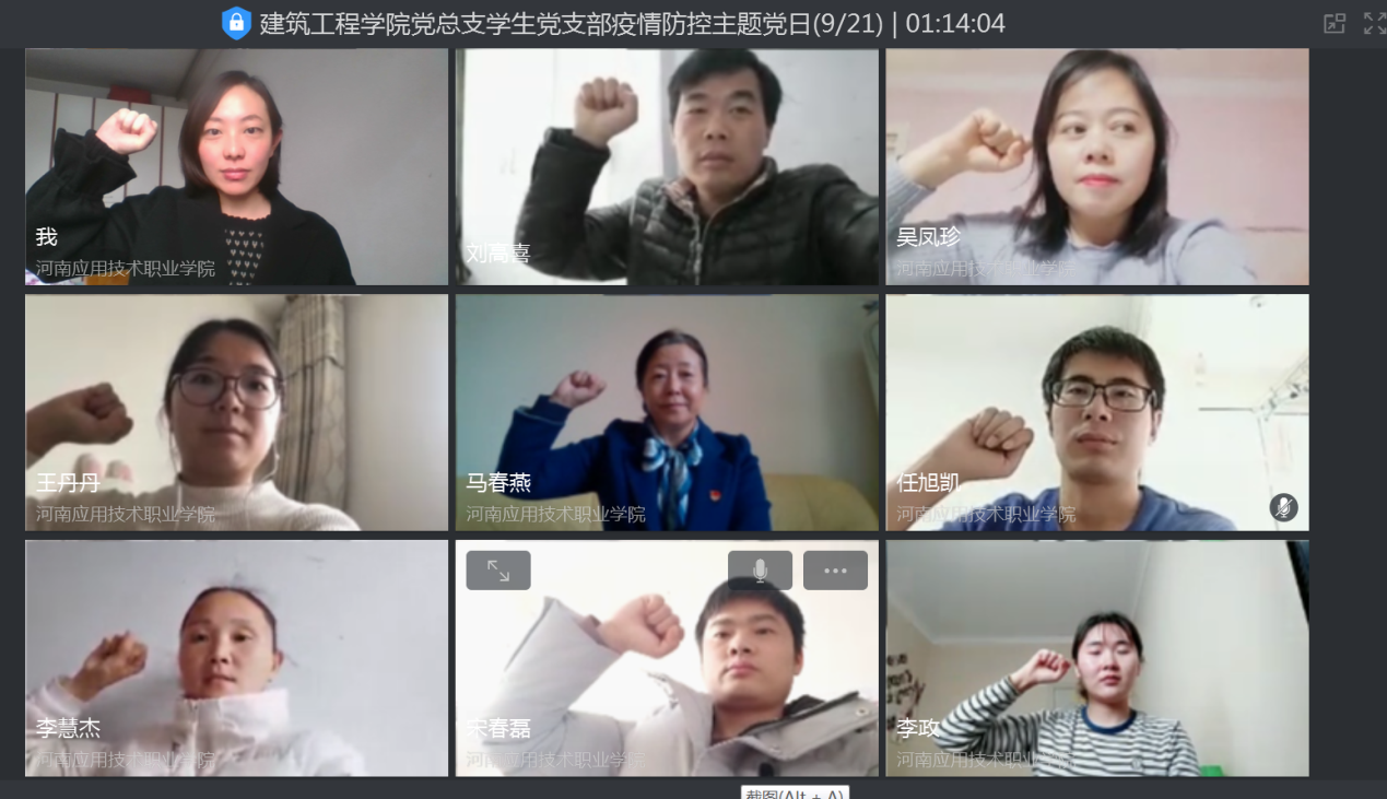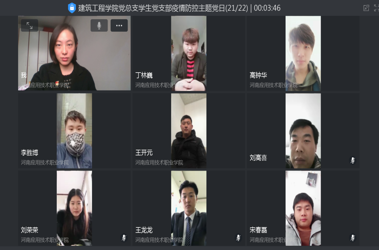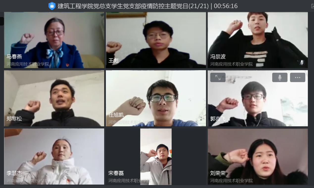为深入贯彻落实习近平总书记关于新型冠状病毒感染肺炎疫情防控系列重要批示指示精神,按照学校党委要求,结合工作实际,2月29日下午,beat365英国官网网站党总支学生党支部利用钉钉办公软件,组织支部9名党员老师和13名学生预备党员开展了 “守初心、献爱心、战疫情、做先锋”主题党日活动。学生党支部书记马春燕主持会议。