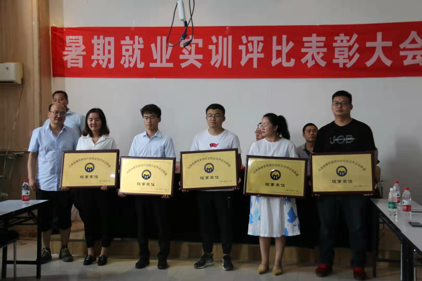 2019年8月26日,我院张虎院长、任旭凯老师和宋春磊老师一行前往华夏星博实训基地进行了beat365英国官网网站校企合作专业2019年暑期实习总结表彰大会。参与此次表彰大会的企业有东易日盛、沪上名家、华普装饰、河南建威工程监理有限公司、晟居装饰、郑州乐豪斯、蓝集装饰、都驰全屋家具定制、龙发装饰、苏人装饰、裕丰装饰等。