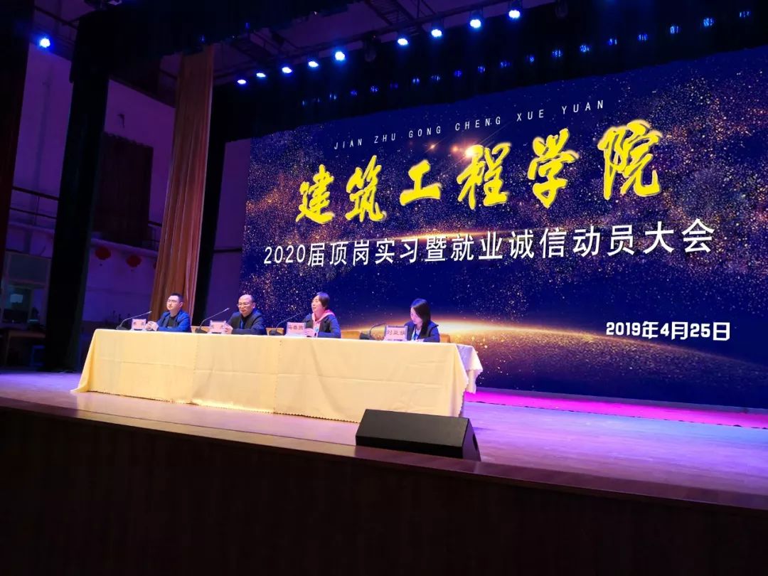 2019年4月25日下午17:30,beat365英国官网网站在大礼堂召开了2020届顶岗实习暨就业诚信动员大会。本次大会由beat365英国官网网站张虎院长,马春燕书记,办公室主任樊磊老师以及团总支书记刘亚娟老师参加。