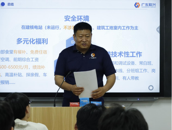 宣讲会开始,史真鼓励同学们就招聘岗位、职业发展等问题积极提问。她强调同学们要认真对待,提前准备好个人简历,以最饱满的精神和状态迎接求职挑战。随后,广东联兴建设有限公司的招聘负责人走上讲台,通过现场互动的方式,深入了解同学们对建筑行业现状以及对公司的认知程度。在介绍环节中,负责人结合实际案例和详细数据,全面阐述了公司的发展历程、核心业务领域、独具特色的企业文化,以及完善的人才培养体系,帮助同学们对未来的实习生活形成更为清晰的认知。