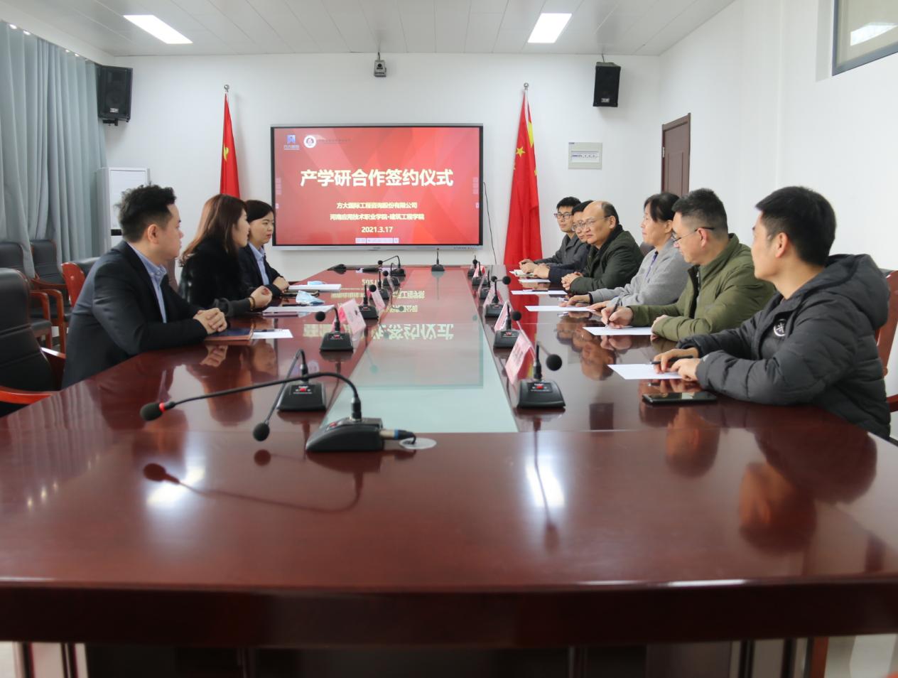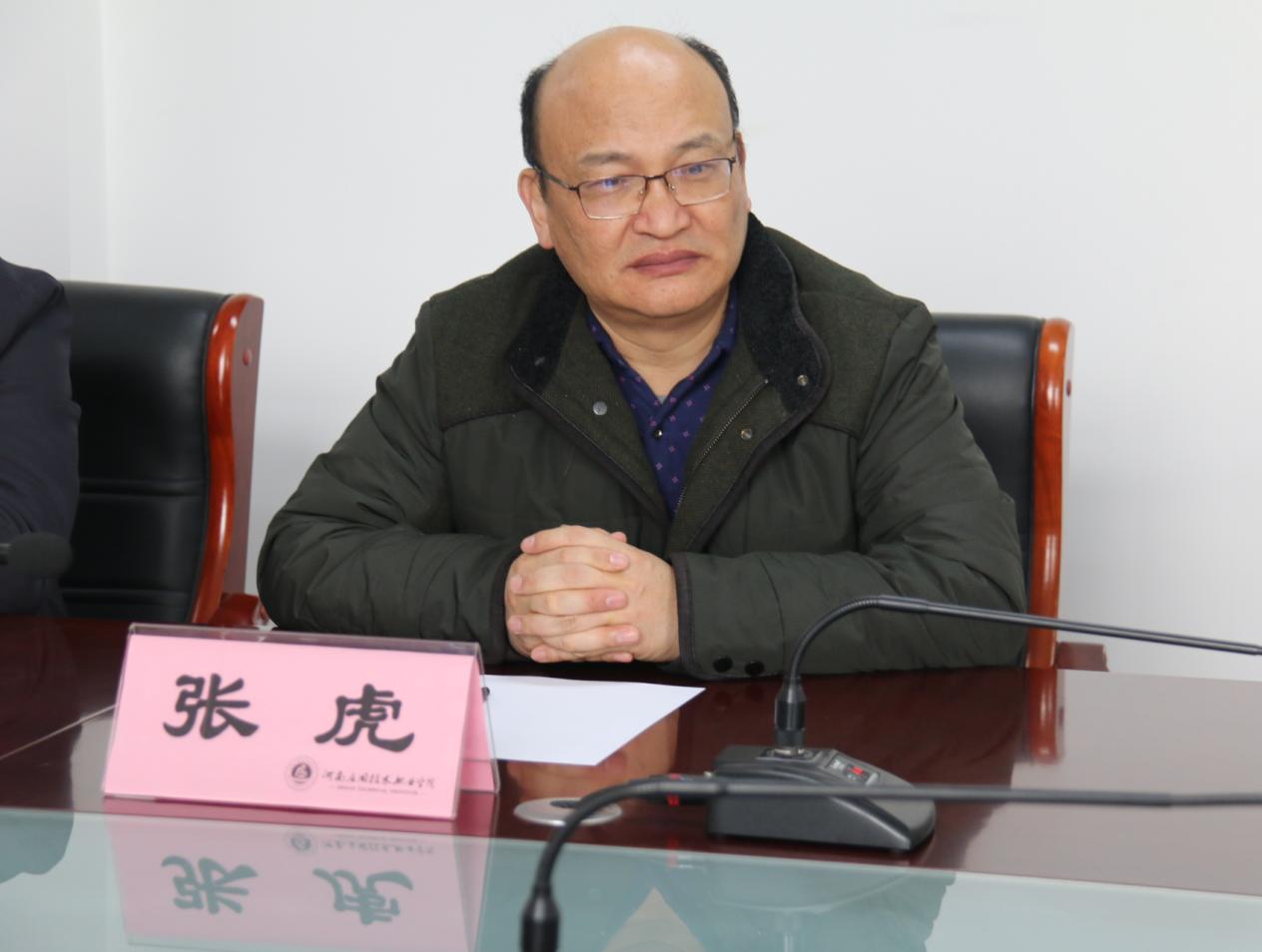 院长张虎与人资总监张鑫代表双方共同签署了产学研合作协议。与会双方代表围绕学生顶岗实习、教师挂职锻炼、订单培养产教融合协同育人等问题进行了探讨交流。