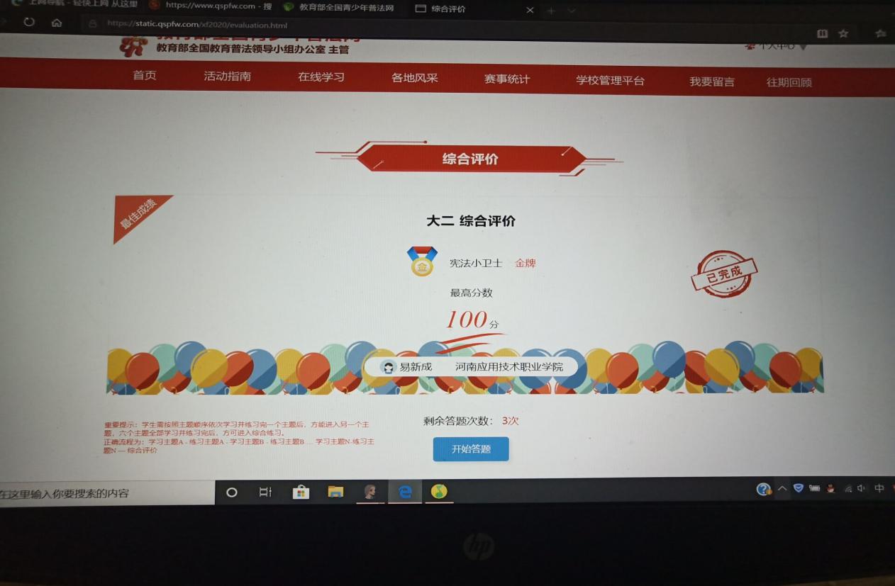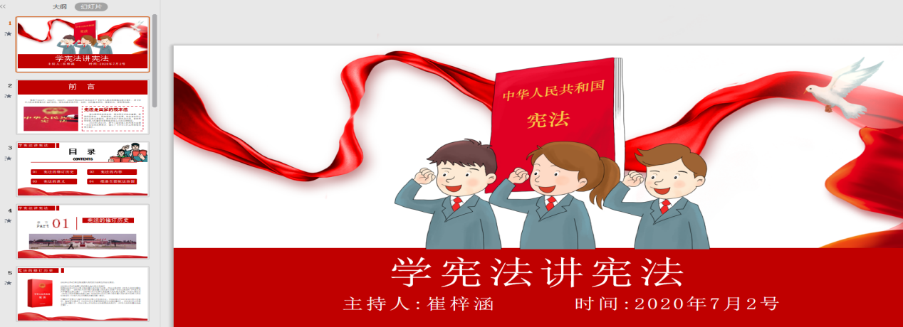 为让同学们更好地了解宪法,2020年7月1日至7月10日,在beat365英国官网网站团总支的组织下,各团支部积极学习《学宪法 讲宪法》,并以此为契机开展了网络青年团课集中学习。