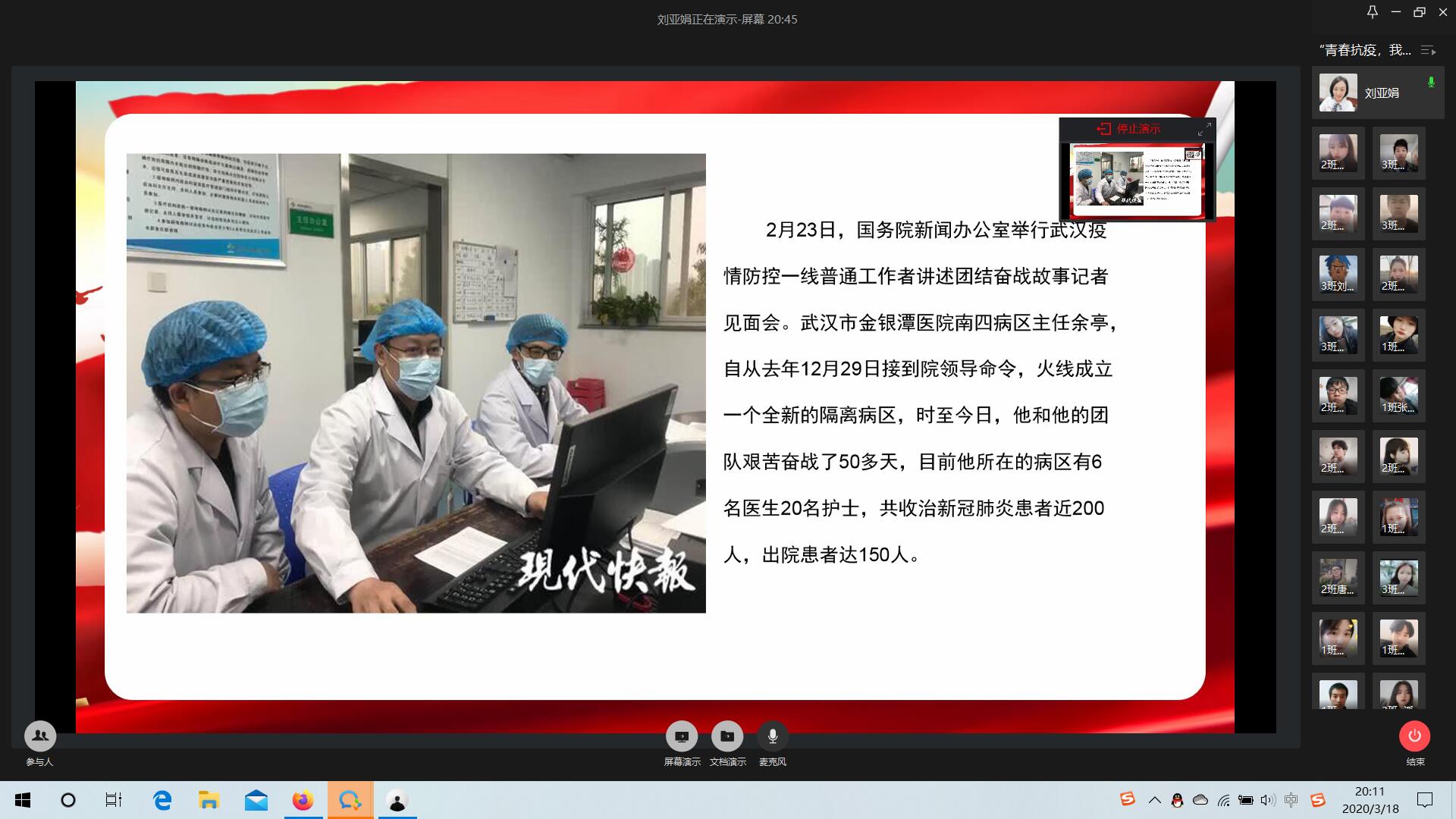 开展云团课 青春助力战疫